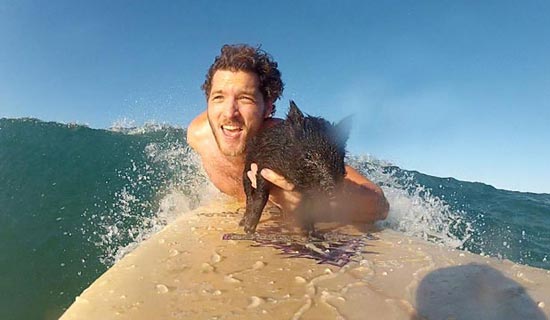 นอกจากเราจะมี บูริน หมูอวกาศ แล้ว ล่าสุด เรายังมี ซอร์โร หมูน้อยนักโต้คลื่นด้วยนะ แถมเจ้าหมูน้อยซอร์โร่ ตัวเล็ก ขนสีดำตัวนี้ มันยังได้ขึ้นหน้าหนึ่งของหนังสือพิมพ์หลายฉบับในนิวซีแลนด์ด้วยแน่ะ ก็แหม มีความสามารถพิเศษเหนือหมูน้อยทั่ว ๆ ไปแบบนี้จะไม่ให้ได้รับความสนใจได้ยังไง จริงไหม?
