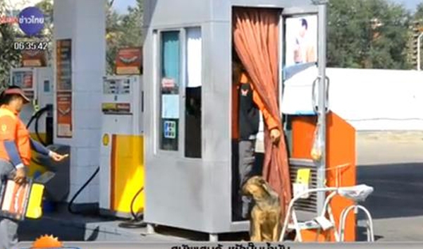 เจ้ากีกี้ ตูบแสนรู้ เฝ้าตู้เก็บเงินปั๊มน้ำมัน ใครเข้าใกล้-ใส่หมวกกันน็อก ไล่เห่ากระเจิง