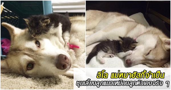 ลิโล แม่หมาฮัสกี้จำเป็น ชุบเลี้ยงลูกแมวเหมือนลูกตัวเองจริง ๆ