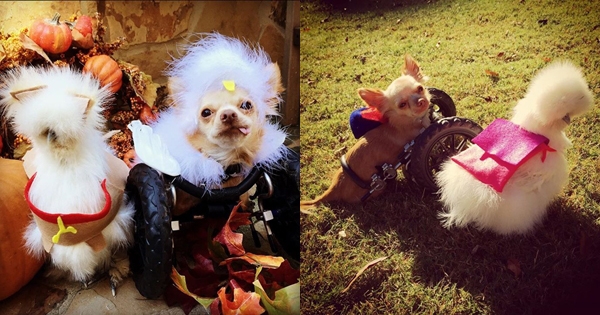 ชิวาวาพิการ-ไก่ขนฟู คู่ซี้ต่างสายพันธุ์คู่นี้ ติดหนึบยังกะปาท่องโก๋