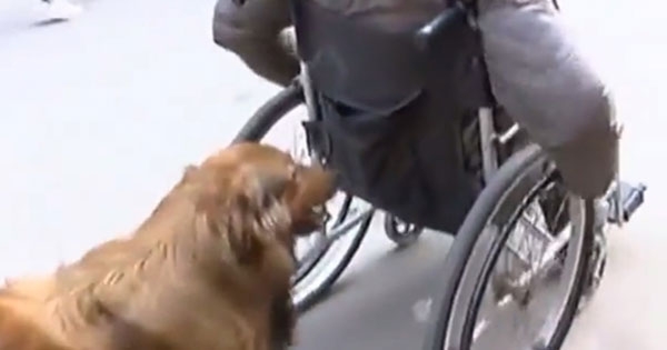 เจ้าตูบสุดภักดี เข็นวีลแชร์เจ้านายพิการไปทุกที่-ไม่เคยอยู่ห่าง (ชมคลิป)