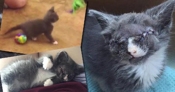 เหมียวจิ๋วหัวใจแกร่ง เล่นซนสนุกสนาน แม้ตาบอดสนิท ถูกเย็บปิดตา
