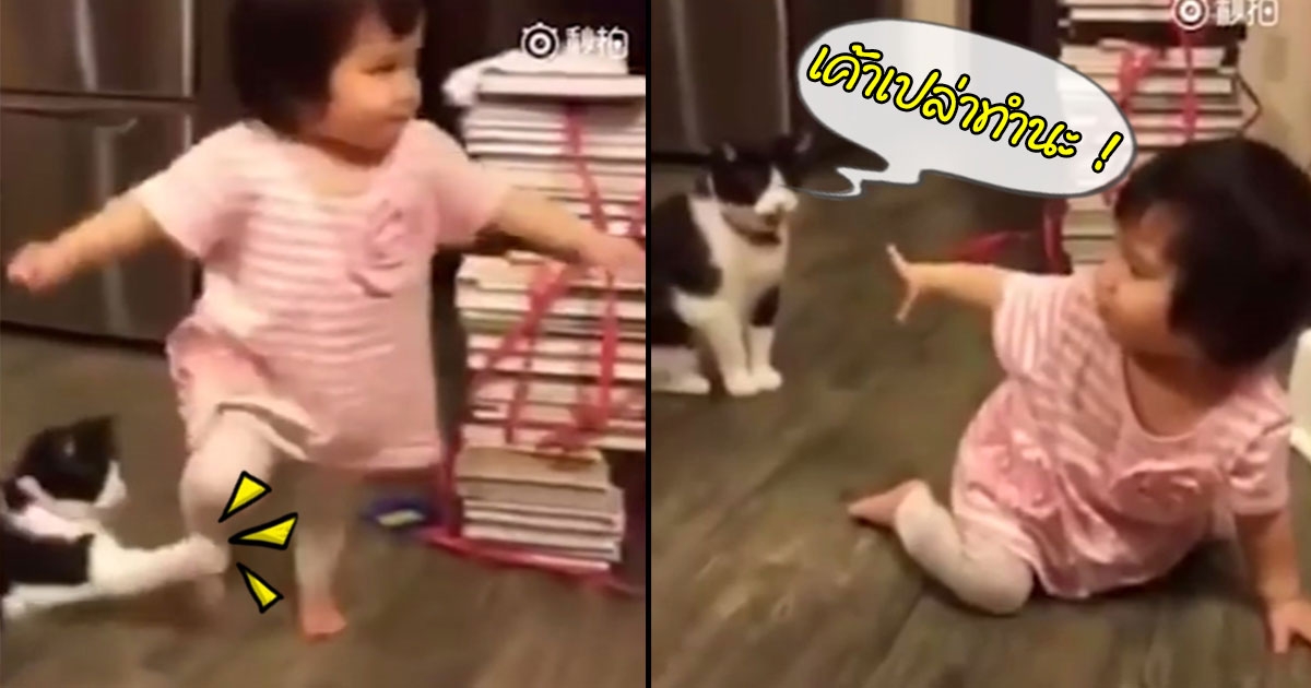 แมวเป็นสัตว์ที่คิดลอบทำร้าย ! เหมียวขัดขาหนูน้อย เอาซะสะดุดล้มหัวคะมำ (ชมคลิป)