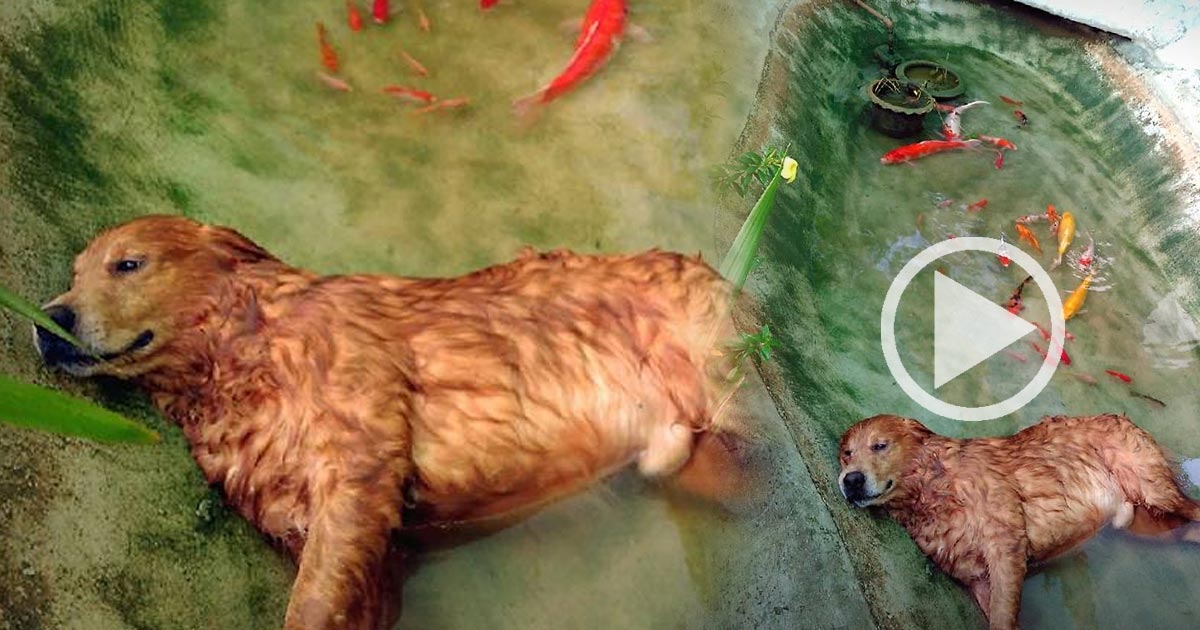 น่ารักอะ เจ้าตูบสบจังหวะเจ้าของไม่อยู่ ลงไปนอนเล่นบ่อปลา สบายจริง ๆ