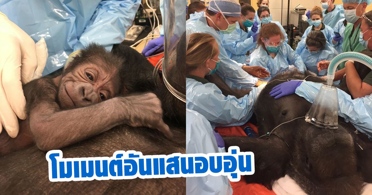 สุดประทับใจ วินาทีหมอสัตว์-หมอคน ร่วมแรงร่วมใจช่วยทำคลอดกอริลลา (ชมคลิป)