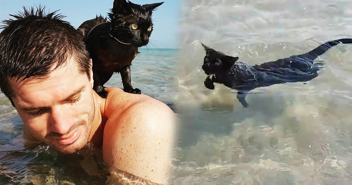 เอาใจไปเลย เจ้าแมวดำโชว์สกิลว่ายน้ำสุดเริงร่า ใครจะคิดว่ามันเคยเป็นแมวถูกทิ้ง