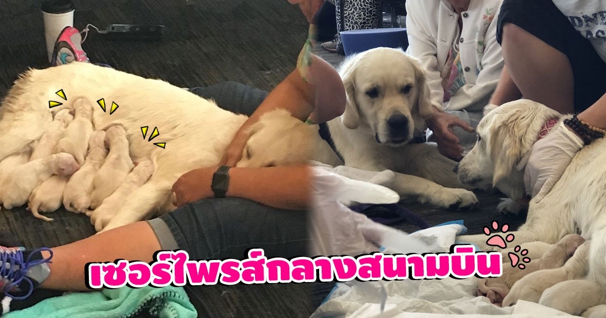 ตูบช่วยเหลือผู้พิการคลอดลูก 8 ชีวิต ระหว่างรอขึ้นเครื่อง เซอร์ไพรส์กลางสนามบิน