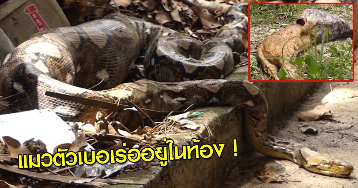 กู้ภัยรุดจับงูเหลือม 4 เมตร นอนอิ่มแปล้ ก่อนขย้อนซากแมวตัวเบ้อเร่อ !!