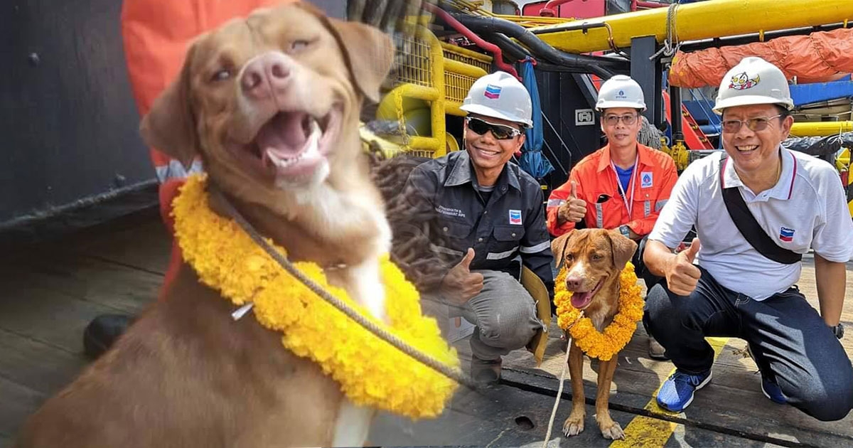 บุญรอด หมาลอยคอกลางทะเล ถึงฝั่งแล้ว มีพวงมาลัยมาต้อนรับ หน้าตาหล่อขึ้นมาก