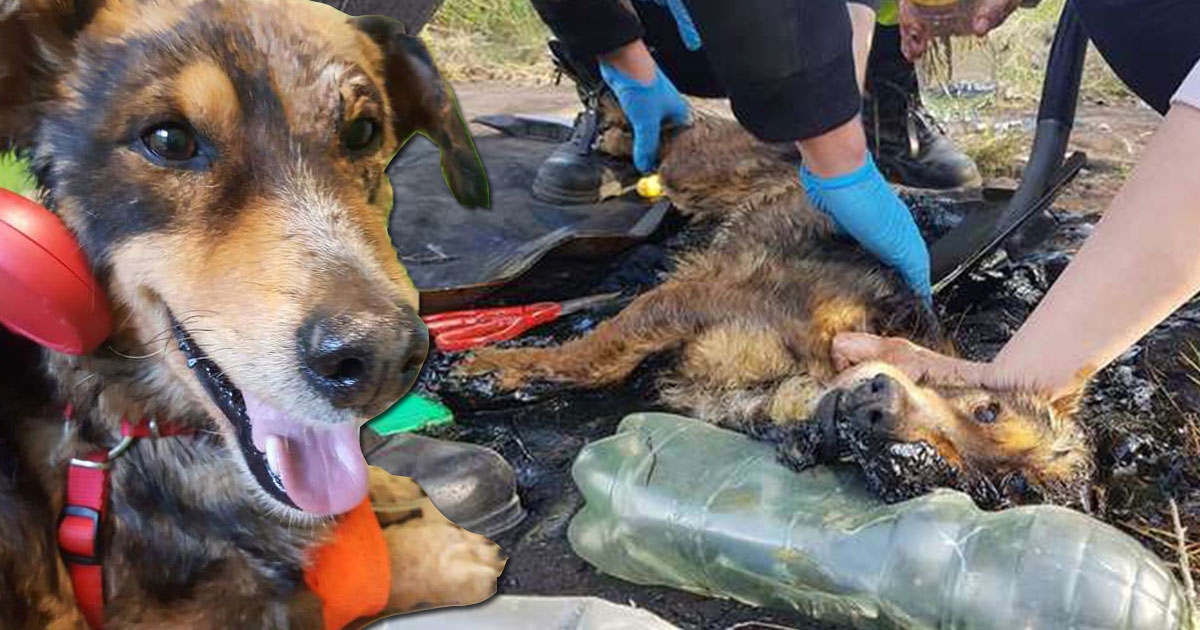 ตูบถูกทิ้งในป่า ติดแหง็กในน้ำมันดิน สภาพอ่อนล้าน่าสงสาร ในที่สุดก็มีคนใจดีเข้าช่วย