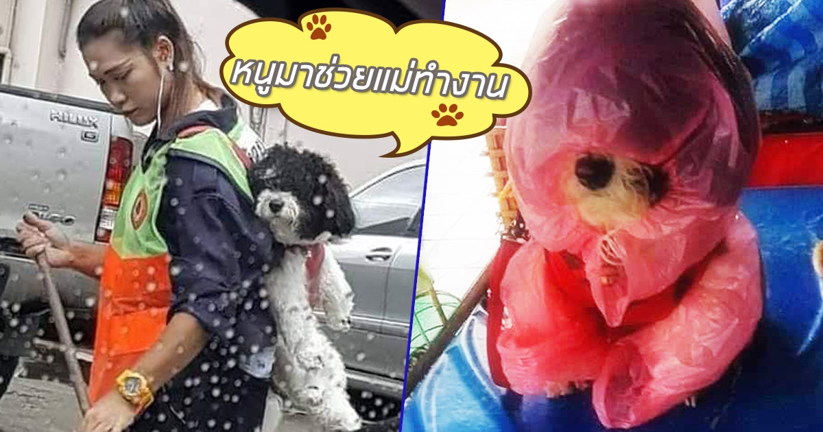 งุ้ยยย น้องมาสด้า ถูกหิ้วขึ้นหลังไปกวาดถนนด้วยกัน แม่ไปไหนหนูไปด้วย
