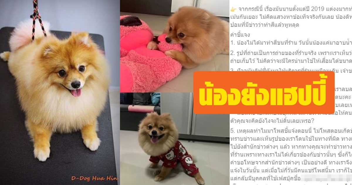 ร้านแจง ข่าวทำสีขนจนน้องหมาหูหลุด เข้าใจผิด เผยตอนนี้น้องหมายังอยู่ดี แฮปปี้เว่อร์