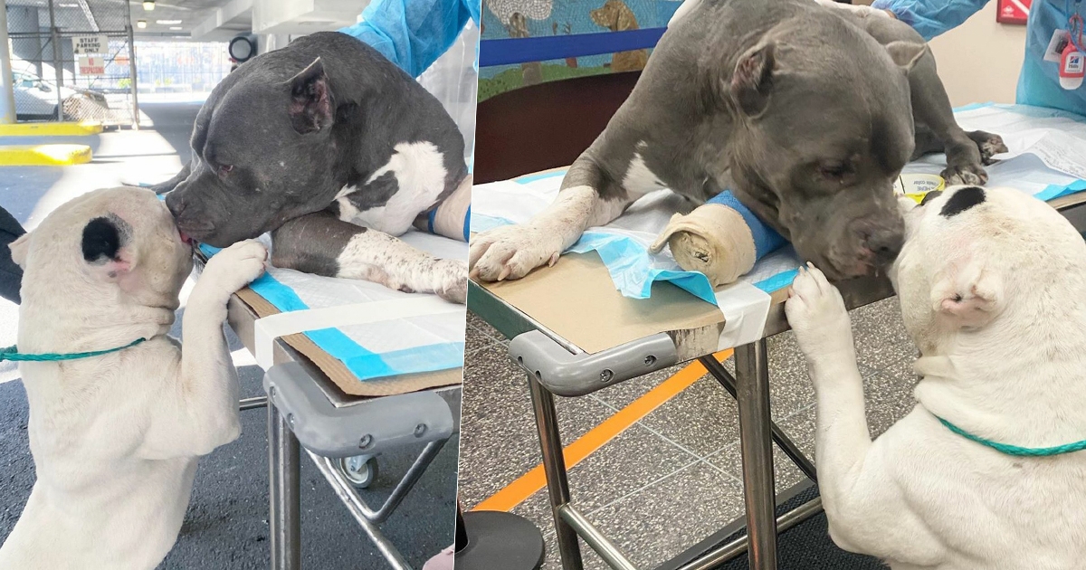 จุกหัวใจ.. 2 พิตบูล ปลอบโยนกัน หลังเจ้าของสละชีวิต ช่วยตูบสุดรักจนตัวตาย
