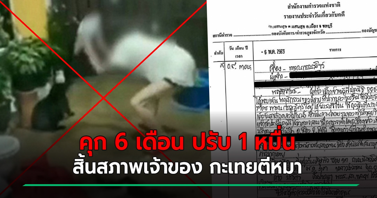 ศาลตัดสิน ลงโทษ กะเทยตีหมา นมเย็น คุก 6 เดือน ปรับ 1 หมื่น สิ้นสภาพเจ้าของ
