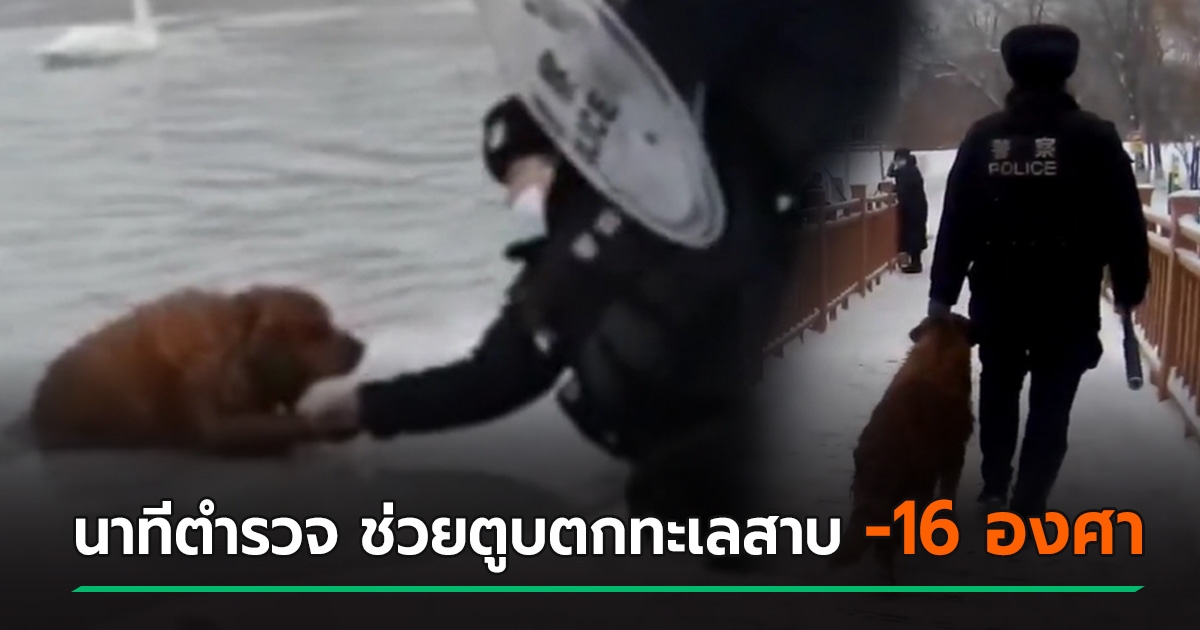 ตำรวจฮีโร่ ช่วยตูบโกลเด้นตกทะเลสาบน้ำแข็ง เย็นยะเยือก -16 องศา ติดแหง็กไปไหนไม่ได้