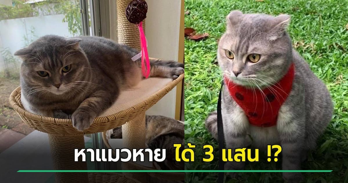 เจ้าของทรมานใจ.. แมวหายออกจากบ้าน ประกาศตามหา ใครเจอมีเงินรางวัลให้ 300,000 !