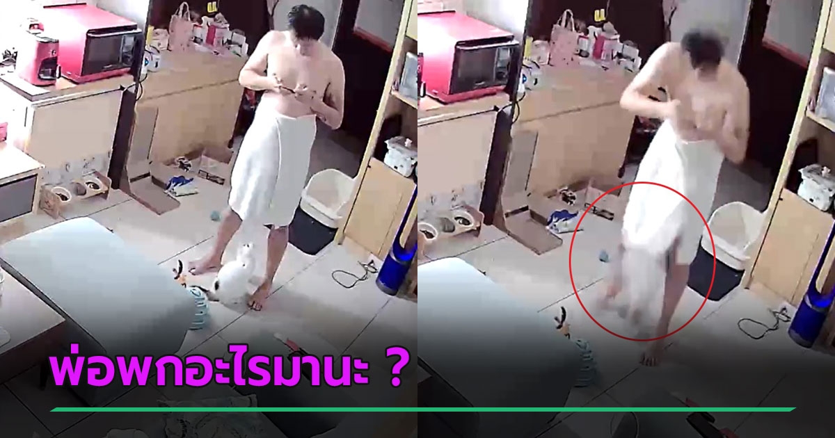 หนุ่มเพิ่งอาบน้ำ นุ่งผ้ามาเจอเจ้าเหมียว ส่อง ๆ ดูนึกว่าพ่อพกของเล่นมา นาทีต่อไป..อูยย