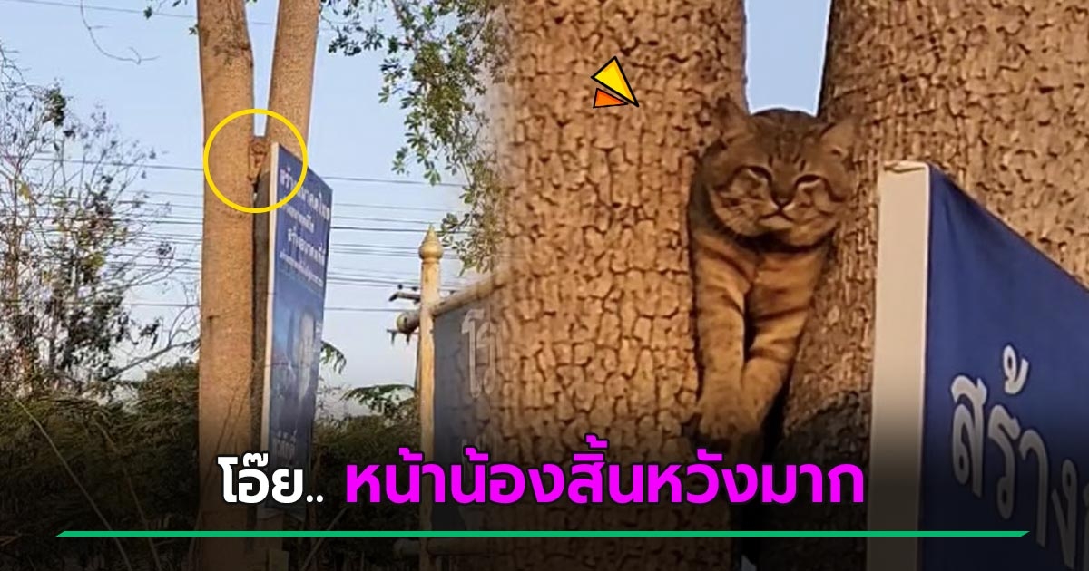 สาวเอ็นดู เห็นแมวปีนต้นไม้ พีคที่แท้น้องอ้วนเกิน พุงติดโดดลงเองไม่ได้ วอนนุดช่วยหน่อย