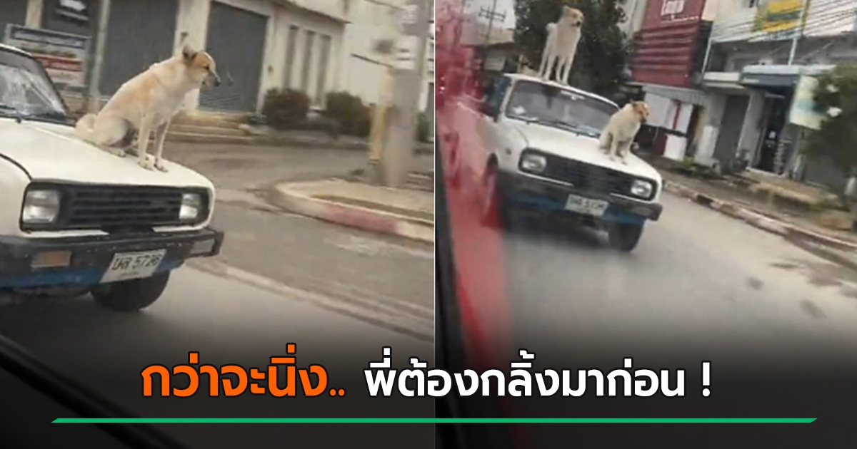 ผู้โดยสารขั้นเทพ! น้องตูบมาเหนือ นั่งหน้ากระโปรงรถ คนแซวนึกว่าโลโก้รถ