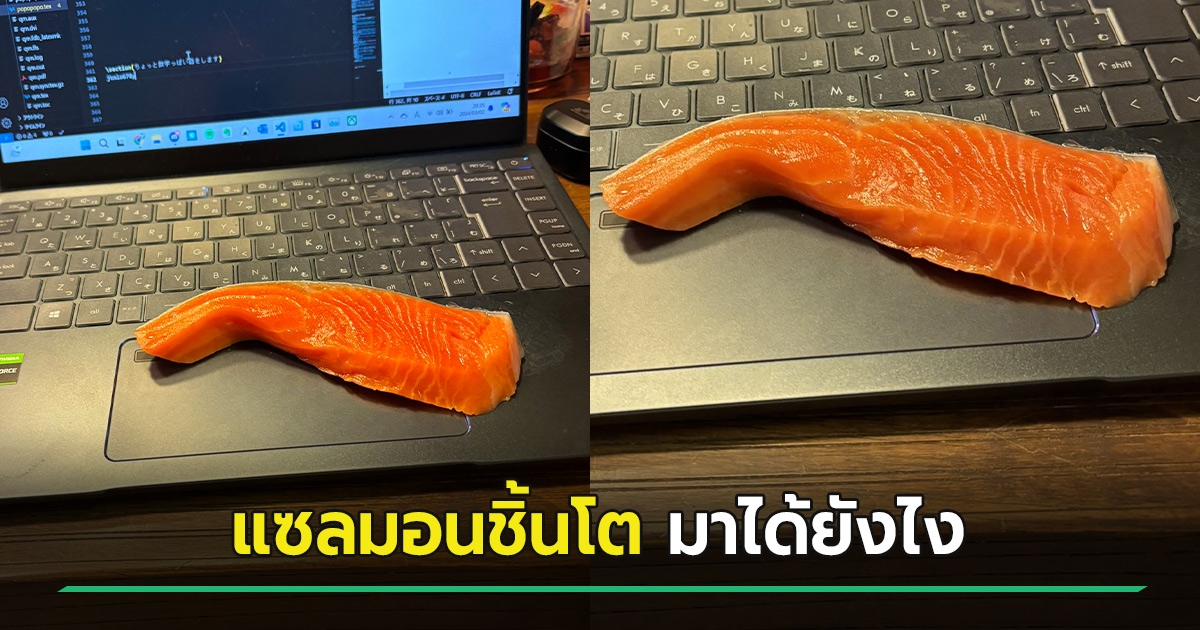 นั่งทำงานอยู่ดี ๆ แซลมอนชิ้นโตมาตกตรงหน้า ตัวการแสบ บ้านแม่ไม่ปลอดภัยแล้ว