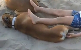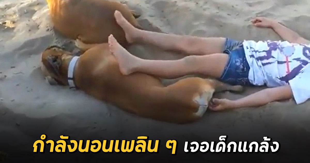 หนูน้อยแกล้งหมา กำลังนอนพักผ่อนริมทะเล ก่อนเจอเอาคืนแบบฮา ๆ