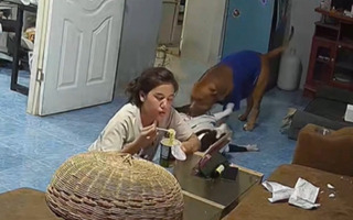 หมากำลังเล่นฟัดกัน แต่ลืมไปว่าแม่นั่งกินข้าวอยู่ตรงหน้า