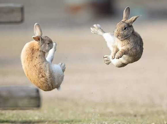 ไม่มีใครยอมใคร กระต่าย 2 ตัว กระโดดต่อสู้กลางอากาศ ก่อนลงเอยแบบนี้...