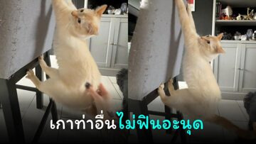 เจ้าเหมียวเกาะเก้าอี้ให้นุดเกาหลัง ท่านี้ดูจะฟินขั้นสุด