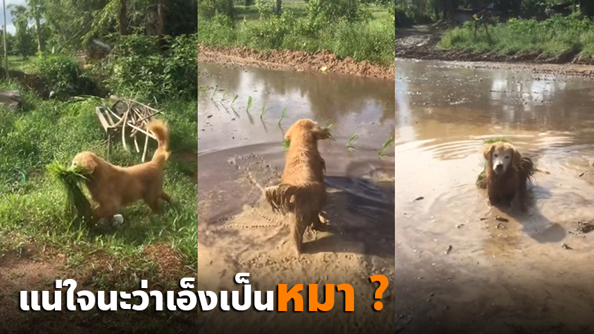 โดยเจ้าของคลิประบุว่า "ฤดูกาลทำนา กินเป็นต้องทำงานช่วย #น้องหมา #โกลเด้น #เจ้าขนทอง" แน่นอนว่าคลิปแบบนี้ชาวเน็ตจะอดใจไม่แซวได้อย่างไร ซึ่งหลายรายคอมเมนต์ว่า สภาพนี้ ทำนาแค่ครึ่งวัน ส่วนอีกครึ่งวันเล่นโคลน ส่วนอีกรายบอก ถ้าไม่มีโคลนรับรองไม่ช่วยแน่นอน