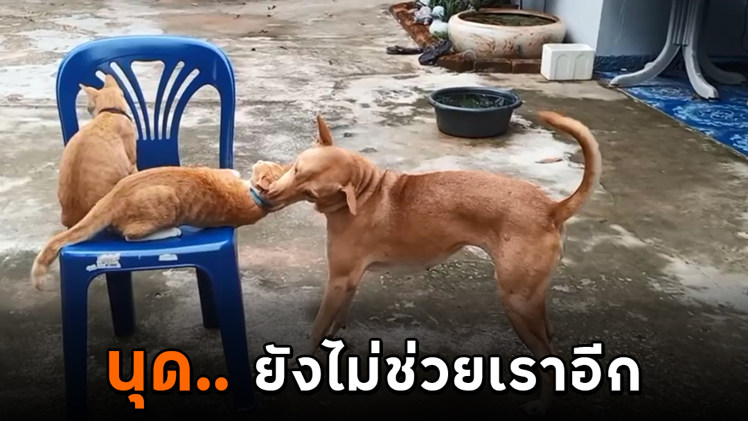 คิดอย่างไรกับคลิปนี้ : อย่างจี้ ! ตูบตัวตึงแกล้งแมวส้มอย่างแสบ ยัง.. นุดยังไม่ช่วยอีก?