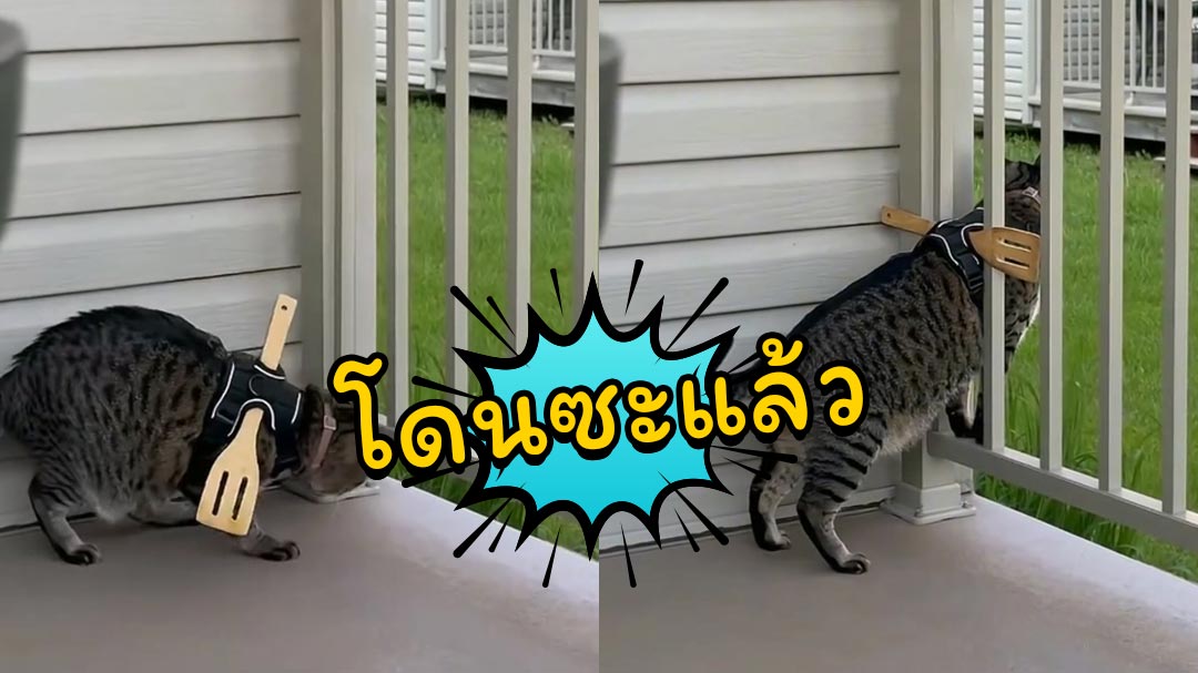 เมื่อเจ้าเหมียวตัวแสบของบ้านชอบแอบหนีเที่ยวบ่อย เจ้าของก็เลยแก้ปัญหาด้วยการติดไม้กัดลอดลูกกรงซะเลย ดูซิ..จะหนีได้อีกไหม...