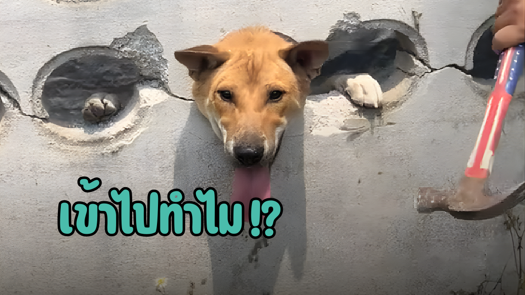 อยากจะถามสักคำ... เข้าไปทำไมลูก ! ผู้ใช้ TikTok @_kraisin28 เผยคลิปตลกสุดฮา เจ้าหมามุดรูกำแพงแล้วหัวติดออกไม่ได้ เดือดร้อนต้องทุบช่วย ออกไปได้แล้วอย่าให้มีครั้งที่ 2 นะ