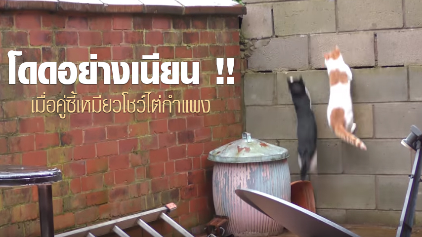 คลิปน่ารัก ๆ เกี่ยวกับเจ้าสัตว์เลี้ยงสี่ขาที่ทำให้สายตาทุกสายตาต้องกลายเป็นทาส อย่างเจ้าแมวเหมียวที่คราวนี้เป็นคลิปความเจ๋งแบบพร้อมเพรียงของคู่หูแมวสองตัวกับการกระโดดไต่กำแพงแล้วขึ้นไปยืนบนขอบรั้วได้แบบที่ว่า เป๊ะเว่อร์ แต่ที่ไหนได้ทำไมตอนกระโดดขึ้นไปยืนบนกำแพงรั้วกลับต้องยืนคร่อมกันแบบนั้นด้วยนี่สิ ชักจะสงสัยเจ้าแมวสองตัวนี้แล้วสินะเออ...