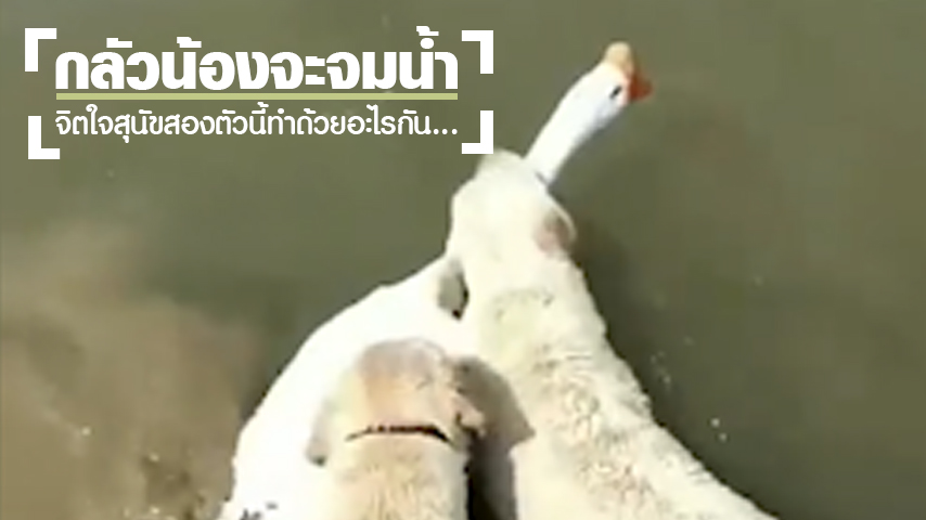 บอกเลย.. คลิปนี่จิตใจน้องหมาทั้งสองตัว นายหล่อมาก กับท่าทีการกระโดดลงน้ำไปเพื่อหวังที่จะช่วยน้องห่านจากการจมน้ำ กับบทสนทนาฮาที่แปลความได้ว่า หมา: เพื่อน นายว่ายน้ำไม่ได้นะ ห่าน: ไม่! ฉันไม่ใช่เพื่อนนาย โถ...ก็นึกว่าจะเพื่อนกัน กลัวว่าน้องจะว่ายน้ำไม่เป็นซะอย่างงั้น จิตใจนายนี่ทำด้วยอะไรกันหรือน้องหมา
