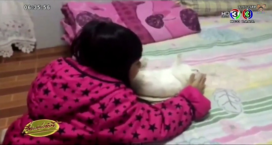 - จนน้องอลินนำมือไปแตะที่หลังของมันเบา ๆ