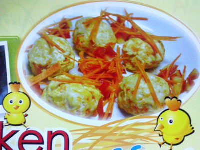 3. แล้วนำมาผสมกันกับไก่สับละเอียด ปั้นเป็นก้อนกลม ๆ