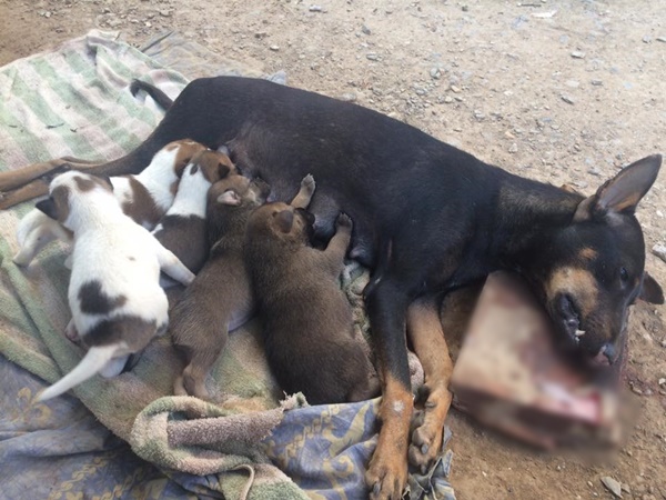 ภาพสะเทือนหัวใจ แม่หมาถูกรถชน รวบรวมลมหายใจเฮือกสุดท้าย คลานมาให้นมลูกก่อนสิ้นใจ ลูกหมาน้อยดูดนมไร้เดียงสา ไม่รู้ว่าแม่ไม่อยู่ด้วยแล้ว วันที่ 30 มกราคม 2560