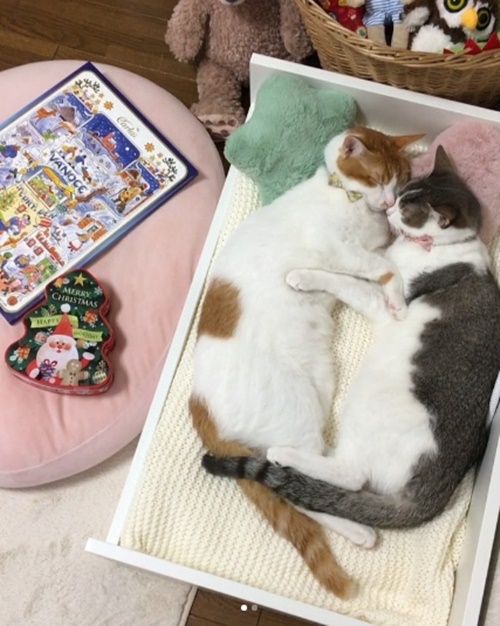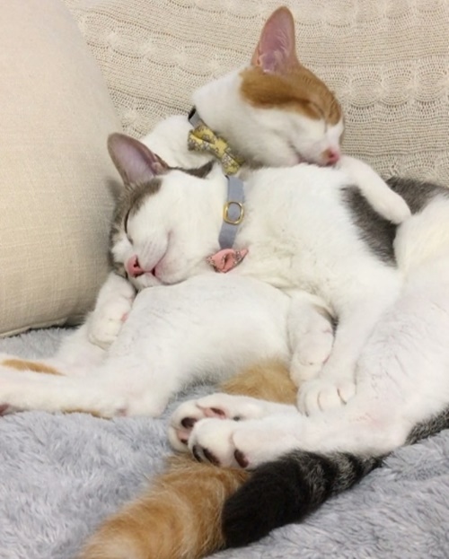 เมื่อวันที่ 6 ธันวาคม 2560 เว็บไซต์ Rocketnews24 ได้เผยเรื่องราวน่ารัก ๆ ชวนยิ้มของเจ้าแมวเหมียวฝาแฝดคู่หนึ่งที่มีชื่อว่า อาเมลี่ และ คานาเล่ เจ้าเหมียวสองตัวนี้เป็นพี่-น้องฝาแฝด เกิดพร้อมกันเมื่อวันที่ 27 กุมภาพันธ์ ที่ผ่านมา ความน่ารักของเจ้าสองตัวนี้คือ ความรักและความผูกพันที่ทั้งคู่มีให้แก่กันอย่างมาก ไม่ว่าจะไปไหนหรือทำอะไรพวกมันก็ไม่เคยอยู่ห่างจากกัน ชอบทำตัวติดกันและหยอกล้อออดอ้อนกันอยู่ตลอดเวลา และที่ทั้งสองชอบมาก ๆ เลยก็คือ การนอนกอดก่ายคลอเคลียกัน