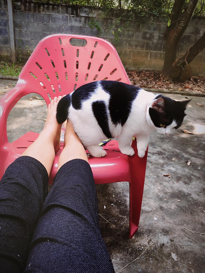 โดยเจ้าของได้เปิดเผยว่า นำเจ้านมวัวมาเลี้ยงเมื่อ 2 ปีแล้ว ไปเจอเป็นแมวจรจัดรื้อกองขยะ อยู่แถวองค์พระปฐมเจดีย์ จ.นครปฐม ตอนที่เจอสภาพทั้งสกปรก ทั้งโทรมมาก ร่างกายผอมแห้ง จึงนำมาเลี้ยงดูปูเสื่ออย่างดี ขุนจนมีสภาพอย่างที่เห็น กลายเป็นแมวขาใหญ่ประจำซอยไปเลย พร้อมเผยภาพสมัยน้องวัวนมยังหุ่นดี ที่ดูขายาวปกติ แต่พออ้วนเลยดูเป็นแมวขาสั้นไปเลย ว่าแล้วก็ตามไปส่องความน่ารักของวัวนมกันเลย