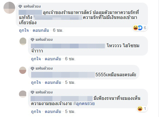 ด้านทาสแมวทั้งหลายต่างก็เข้ามาคอมเมนต์แซว พี่ชม กันยกใหญ่ บางคนกล่าวว่า อย่างกับพล็อตในละคร ที่พระเอกเป็นลูกคนรวย ปลอมตัวเป็นหนุ่มยาจกมาตามหารักแท้ บางคนก็แซวแมวสาวว่า พลาดแล้วที่ไม่รับรักพี่ชม อดกินอาหารฟรีตลอดชีวิตเลย ในขณะที่บางรายแทบไม่อยากจะเชื่อว่าเป็นแมวตัวเดียวกัน