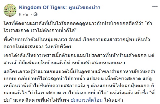 อ่านรายละเอียดเพิ่มเติมจาก เฟซบุ๊ก Kingdom Of Tigers: ทูนหัวของบ่าว, ชมแมวเพ็ตโฮม