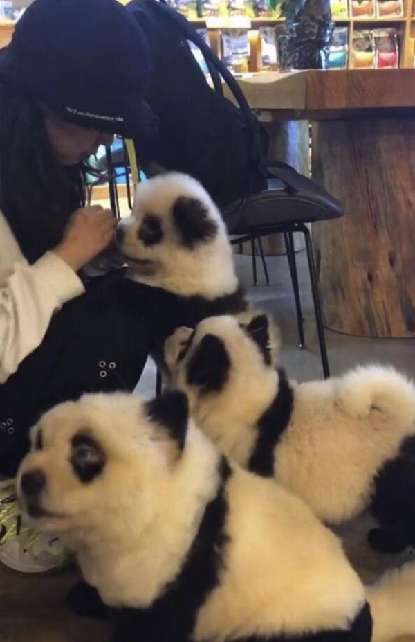 เจ้าสัตว์ที่ว่ามันคือ สุนัขพันธุ์เชาเชา ถูกทางร้านย้อมสีขนเป็นสีขาว-ดำ ให้เหมือนลูกหมีแพนด้า มีจำนวนทั้งหมด 6 ตัว โดย ฮวง เจ้าของร้าน เผยกับสื่อท้องถิ่นว่า ทางร้านใช้ยาย้อมสีที่ปลอดภัยนำเข้าจากประเทศญี่ปุ่น ไม่เป็นอันตรายต่อสัตว์ นอกจากนี้ ยังมีบริการย้อมสีให้สุนัขของลูกค้าด้วยหากสนใจ โดยคิดราคา 1,500 หยวน (ราว 6,400 บาท)