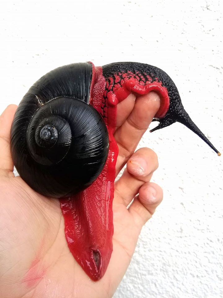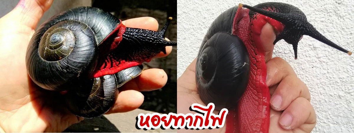 สำหรับ Fire Snail หอยทากไฟ ถูกค้นพบครั้งแรกเมื่อปี 1938 บริเวณเทือกเขา Telom Valley บริเวณเขตที่ราบสูง Cameron Highlands ในประเทศมาเลเซีย โดยลำตัวของมันมีลักษณะเป็นเปลือกสีดำสนิทเส้นผ่านศูนย์กลางยาวประมาณ 7 เซนติเมตร และมีสีแดงสดแซมขึ้นบริเวณขอบเปลือกหอยที่ดูคล้ายกับเปลวไฟจนเป็นที่มาของฉายาหอยทากไฟนั่นเอง