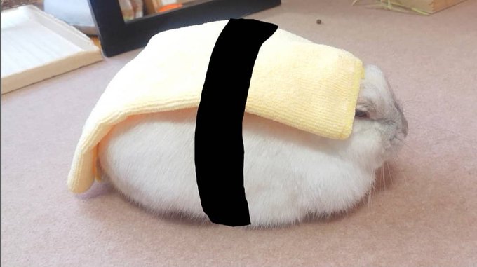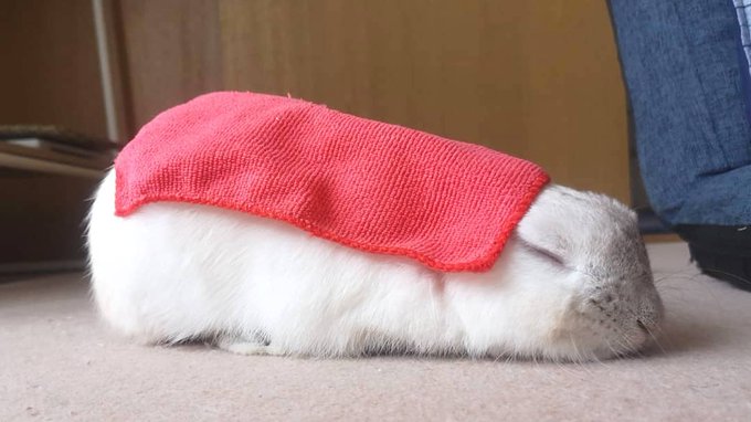 ผู้ใช้ Twitter ชาวญี่ปุ่น @shirokinor ได้โพสต์ภาพน่ารัก ๆ ของเจ้ากระต่ายที่ถูกจับแต่งคอสเพลย์เป็นข้าวปั้นญี่ปุ่น หรือซูชิ ด้วยการนำผ้าสีวางทับนตัว จนชาวเน็ตเข้ามาแห่กดไลก์เป็นหมื่นครั้ง !!