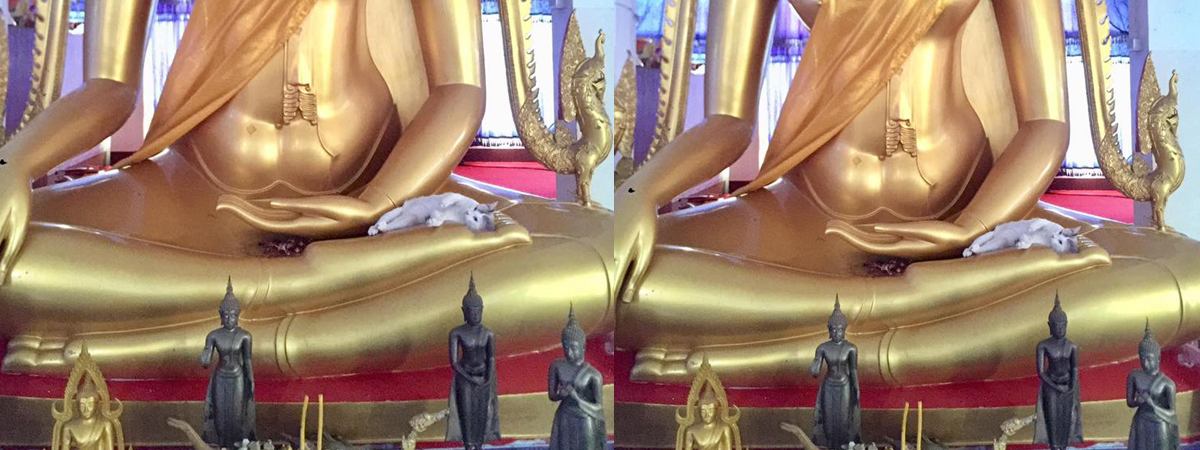 เฟซบุ๊ก พระฤทธิ์ธิชัย อิทฺธิชโย ปิยฤทธิ์ฤาพงศ์ ได้โพสต์ภาพตอนเข้าไปดูพระพุทธรูปในวัด ซึ่งงานนี้ใคร ๆ ต่างสะดุดตาเห็นบางอย่างอยู่ตรงพระพุทธรูป พอซูมดูชัด ๆ พบความจริงที่ว่า... มีน้องแมวไปนอนบนพระนี่เอง ใคร ๆ ต่างพากันเอ็นดูน้องกันทั้งโซเชียล