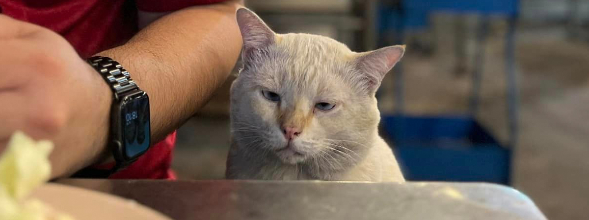 เฟซบุ๊ก Kookkai Srirat ได้โพสต์ในกลุ่ม ทาสแมว ซึ่งเป็นภาพเด็กเอนประจำร้านหมูกระทะ มาต้อนรับลูกค้าเป็นอย่างดี แถมยังมานั่งอยู่ข้าง ๆ อีกด้วย ส่วนเด็กเอนที่ว่าไม่ไช่ใครที่ไหน เป็นน้องแมวขาวนั่นเอง นอกจากจะนั่งข้าง ๆ ลูกค้าแล้ว ยังส่งสายตาอ้อนวอนให้ด้วย เห็นเขากินแล้วคงรู้สึกหิวแน่ ๆ ถ้าทาสแมวเห็นคงได้ป้อนหมูน้องสักชิ้น