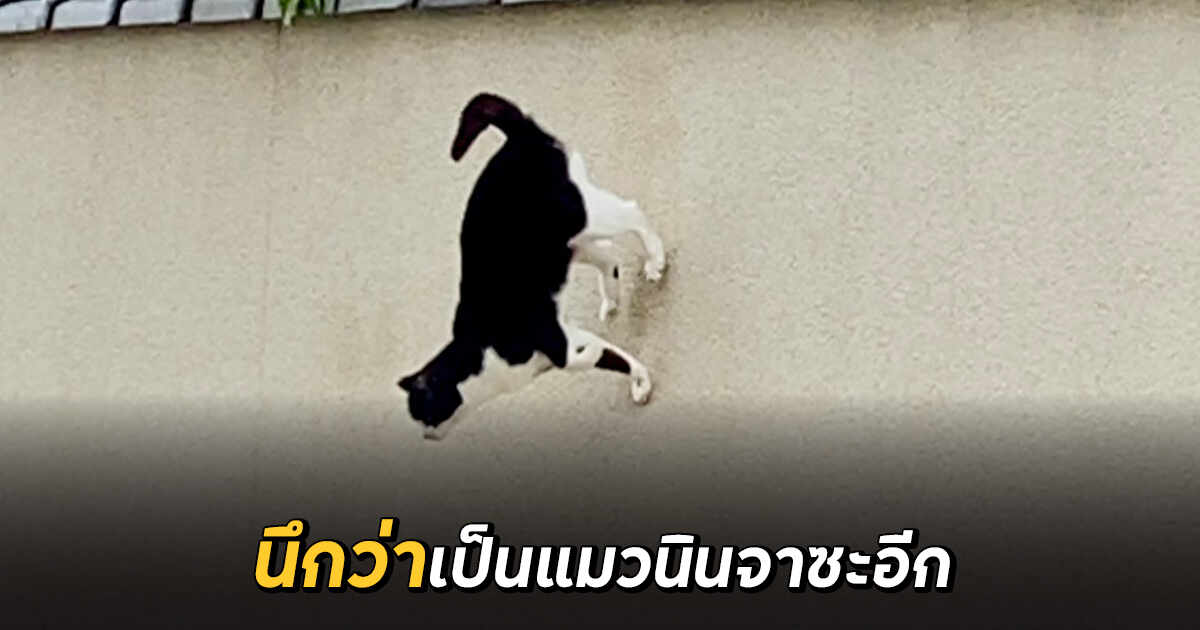 ส่องภาพน้องแมวปีนลงกำแพง ที่ชาวเน็ตอดแซวไม่ได้ว่าเป็นนินจา