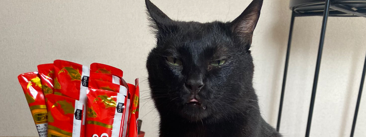 ทวิตเตอร์ @RIRI722883 ได้เผยภาพเจ้าแมวดำ หลังเห็นทาสซื้อขนมชุดใหญ่มาให้ กลัวน้องจะหิว เลยเอามาให้กินแบบไม่ขาดปาก ตอนแรกนึกว่าน้องจะดีใจหลังเห็นขนม แต่สีหน้าน้องดูสวนทางไปหมด ถึงหน้าไม่ยิ้ม แต่น้ำลายไหลย้อยแล้วก็เป็นได้