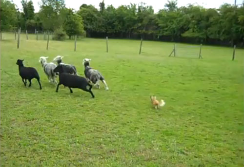 เคยนำภาพของสุนัขเลี้ยงแกะตัวใหญ่แต่ใจป๊อดกลัวแกะมาฝากกันไปแล้ว คราวนี้ มาดูสุนัขตัวเล็กที่ไม่ได้เป็นสุนัขเลี้ยงแกะ แต่กลับใจกล้าวิ่งไล่แกะหนีกระเจิงกันบ้าง งานนี้รับรองเจ้าสุนัขเลี้ยงแกะใจป๊อดที่เคยเห็นกันต้องอายกันเลยล่ะ