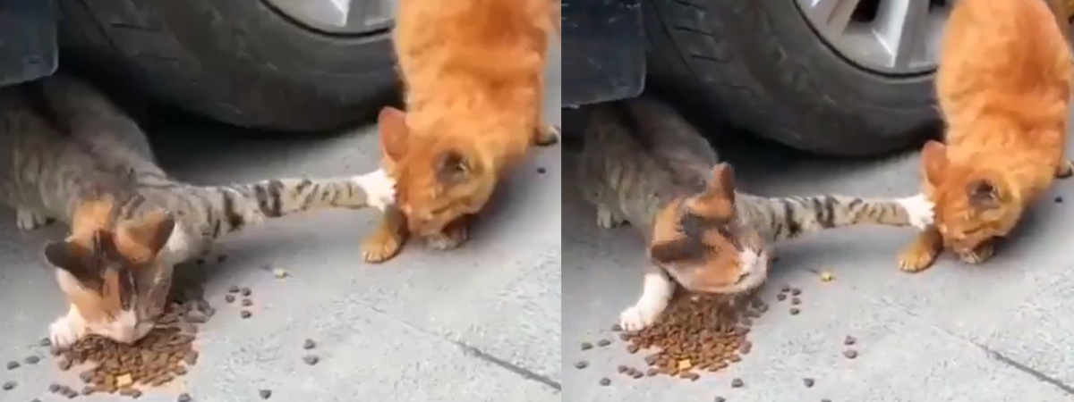 ทวิตเตอร์ @ShouldHaveCat ได้เผยภาพไวรัลดัง ที่ชาวเน็ตแชร์ถล่มทลาย ซึ่งเป็นภาพของเจ้าแมวสลิดเกิดอาการหวงอาหารขั้นสุด มีมนุษย์เทให้กินก็ต้องรีบจัด เดี๋ยวมีตัวอื่นมาแย่ง แล้วน้องแมวส้มเห็นแล้วหิว อยากร่วมวงกินด้วย แต่เจอเจ้าสลิดเอาเท้ายันหัวไว้ ไม่ให้แมวส้มเข้ามากิน จะกินเองหมดเลย ชาวเน็ตพากันขำและเอ็นดูทั้งโซเชียล
